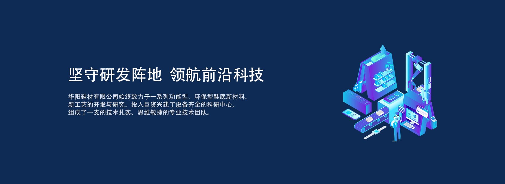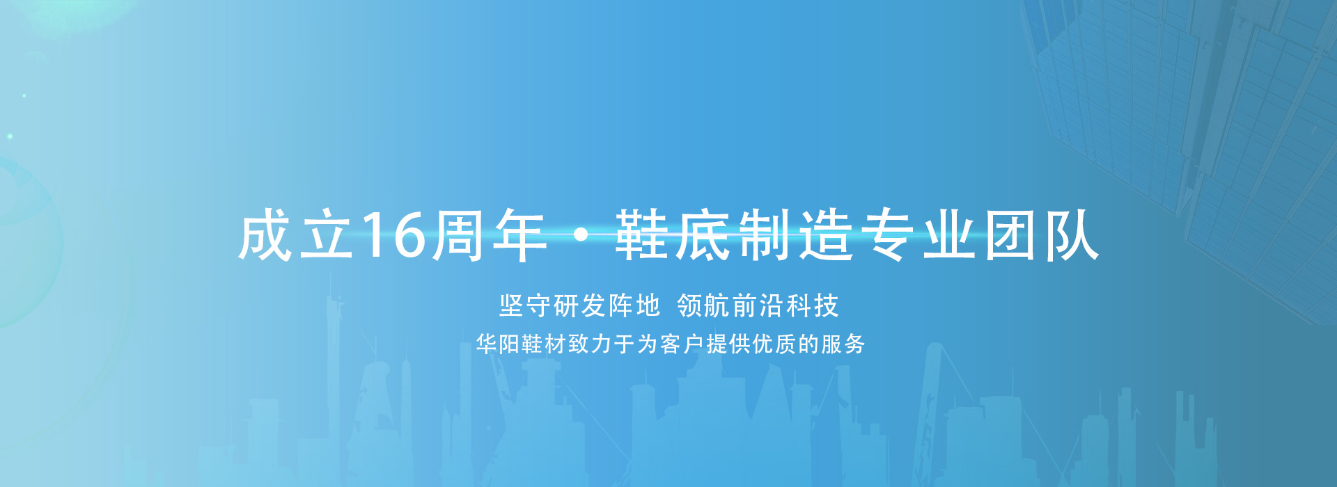 華陽(yáng)鞋材于2004年成立,傳承晉江傳統(tǒng)工匠精神與現(xiàn)代化工藝技術(shù)完美融合,全面滿(mǎn)足客戶(hù)需求,成為國(guó)內(nèi)市場(chǎng)上專(zhuān)業(yè)的鞋底制造商之一。多年來(lái),華陽(yáng)鞋材自主研發(fā)及引進(jìn)最先進(jìn)智能生產(chǎn)設(shè)備,致力于生產(chǎn)EVA一次(IP)成型鞋底、EVA二次(MD)成型鞋底、TPR鞋底、RB(橡膠)鞋底,TPU鞋底及配件及底材組合。